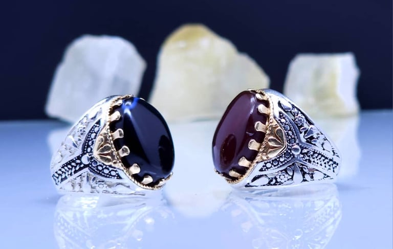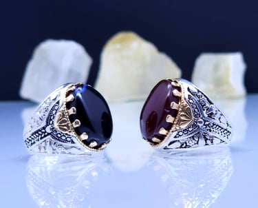 Yemeni rings are traditional handcrafted jewelry pieces known for their bold designs and cultural significance. Often made from silver and adorned with agate or other semi-precious stones, each ring reflects Yemen’s rich heritage, artistry, and spiritual symbolism.