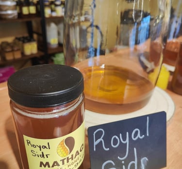 Sidr Honey is a rare honey from ancient Sidr trees. It has a rich taste, a golden color, and is valued for its natural energy boost. Royal Sidrcontains a extra hint of royal jelly.