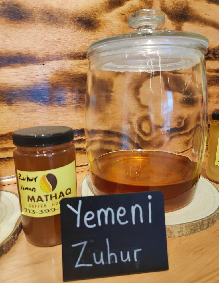 Yemeni Zuhur Honey is a light, floral honey made from wild mountain flowers. It has a gentle taste and brings you the natural beauty of Yemen in every spoonful.